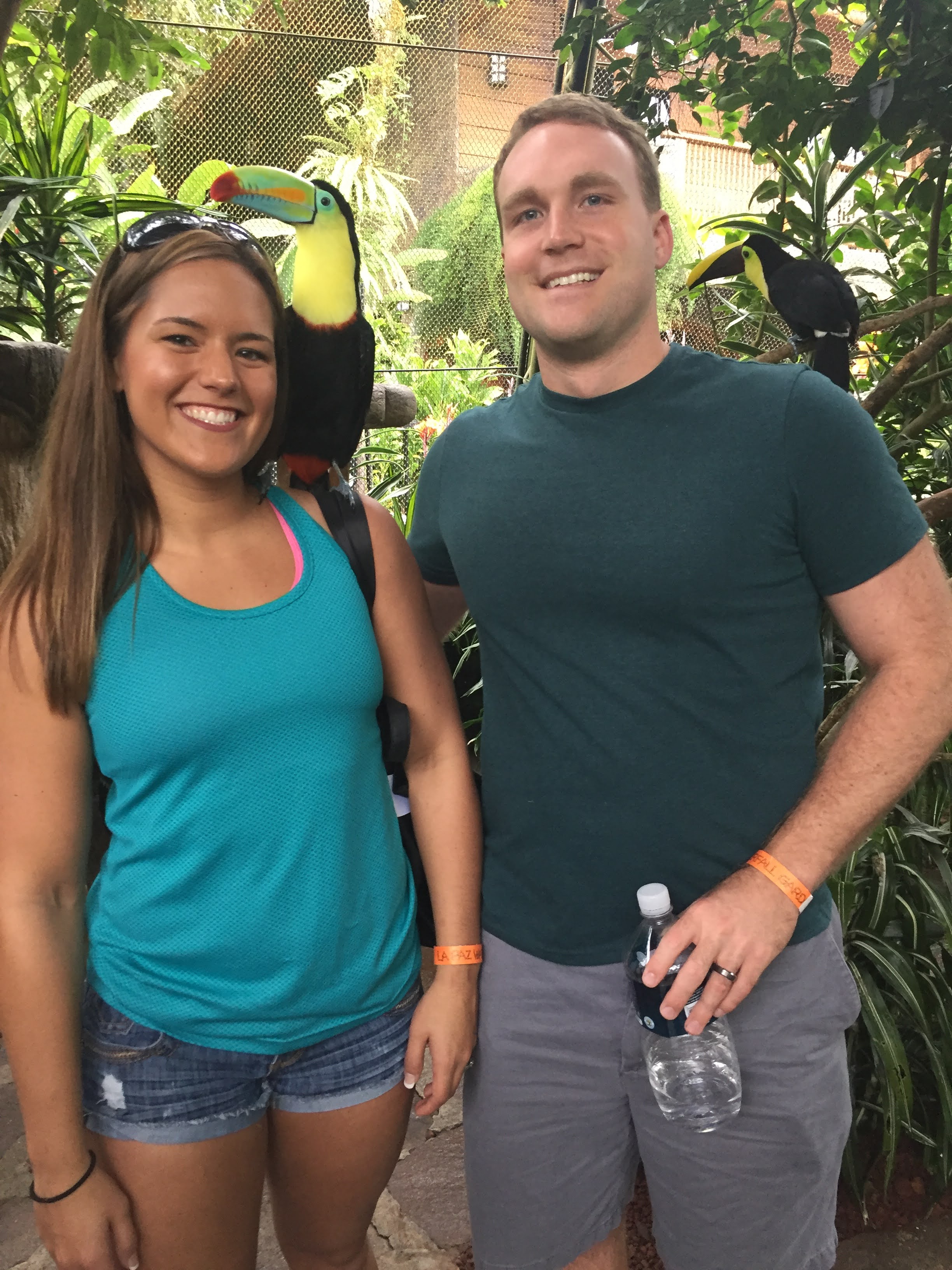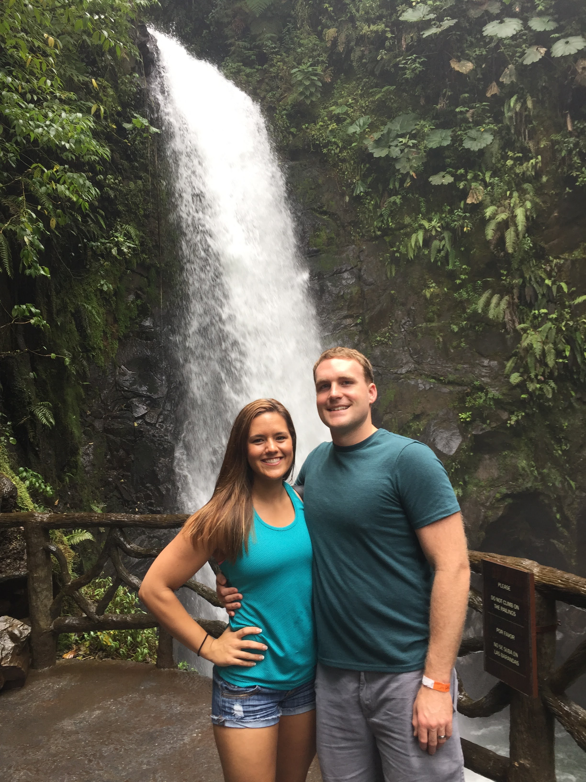 When we first arrived at the Juan Santamaria International Airport (SJO) in Costa Rica 2 days after we committed our lives and our travel budgets to each other, we stayed at a local Hampton Inn due to how late our plane arrived. The following morning, we were picked up and driven about 3 hours to the Arenal region of the country. On our way, we stopped at a coffee farm (and sadly, neither of us drank coffee at the time) and La Paz Waterfall Gardens Nature Park. There, we saw a wide array of animals from the iconic red-eyed tree frog to a jaguar, as well as the stunning water falls that made up the park.