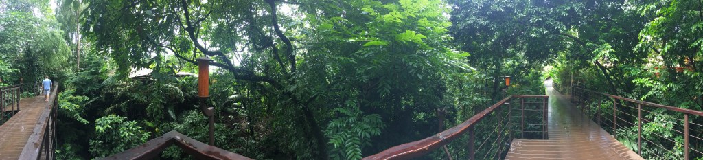 After visiting the adventure park, we completed our journey to Arenal Nayara which, we soon found out really lived up to its hype, was rated the best resort in Central America as recent as 2020. We were welcomed with a flight of tropical drinks. We had a personal hot tub on a patio overlooking the rain forest. From the walking paths just outside our room, we could look up into the trees and spot sloths and tropical birds. Everything about the hotel was incredible.