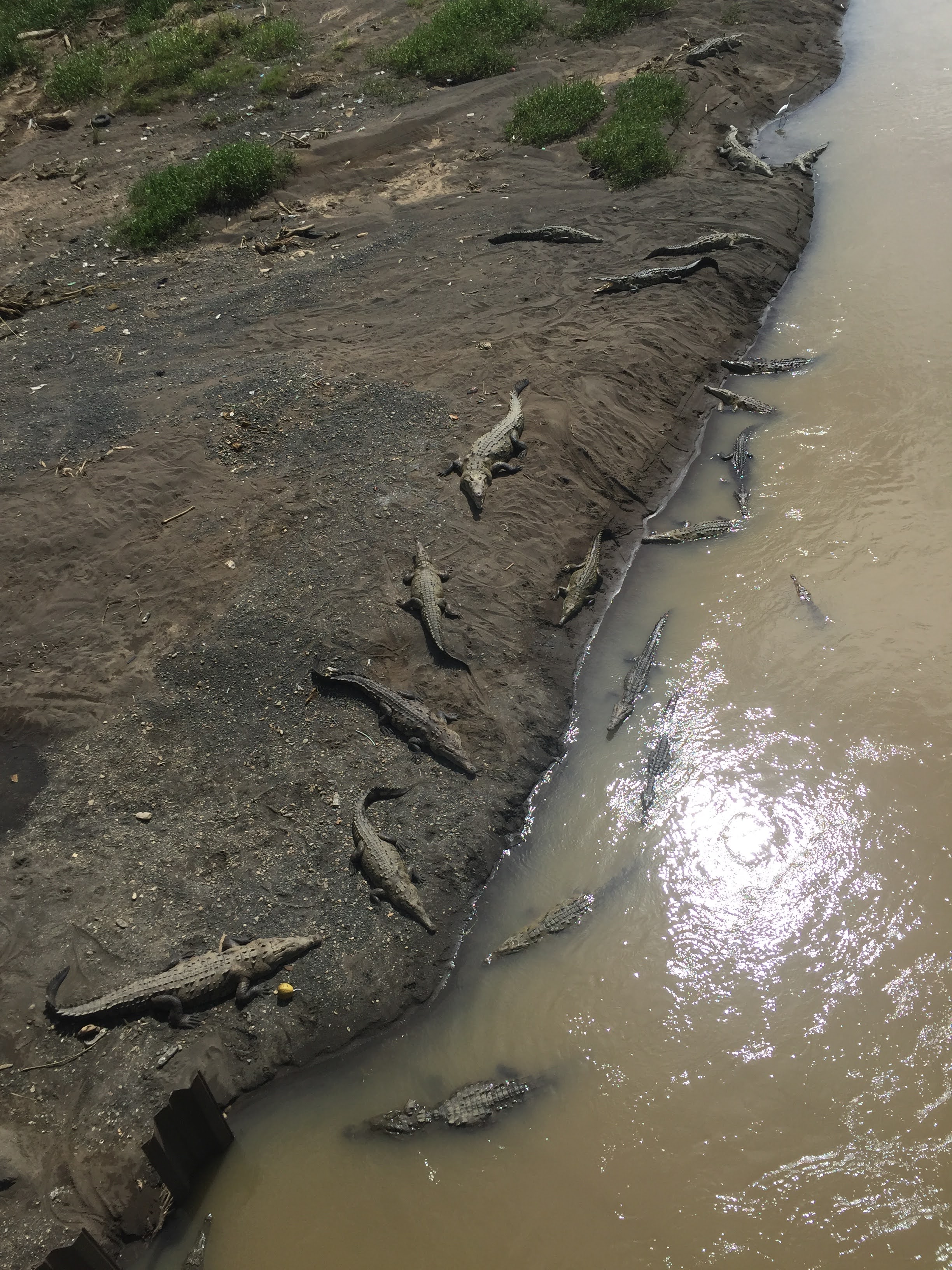 After 5 glorious days in the La Fortuna and Arenal area, we were picked up from our hotel and taken to our second Costa Rican destination, Hotel Parador at Manuel Antonio. On our journey, we crossed over the main bridge over the Tárcoles River. This bridge is also known as “puente de cocodrilo,” or “crocodile bridge” due to the dozens of crocodiles that line the riverbed.