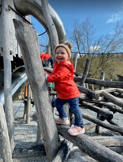 Although in a lot of pain, we all drove to Unterkirnach to have lunch at Schlossbergstüble before letting the girls play at the neighboring 3-story playground, Speilscheune Unterkirnach. The food at Schlossbergstüble was delicious and the restaurant was within walking distance of the playground. Once we were inside, it was hard to get the girls to leave. There was so much to see and do. The two things that kept the girls’ attention was the ball pit and the mini roller coaster. Although a visit to this playground was on our “if we have time, maybe” list, it ended up being the perfect stop for our kiddos during our stay in the Black Forest.