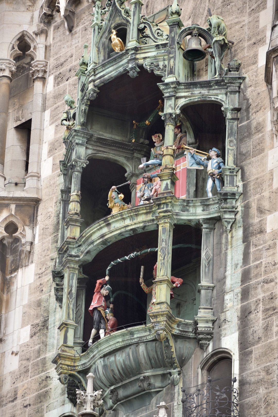 On our last full day in Munich, we walked over to Marienplatz for our hotel, Le Méridien München which was a 15-minute walk. Marienplatz is famous for its Christmas markets and for the Glockenspiel at Neues Rathaus. Sine we were definitely not in Munich during the Christmas market, we did get to enjoy the clock ring out at 11:00 AM. At the time of our trip and this post, the glockenspiel rings daily at 11 AM and at 12 PM, and from March to October additionally at 5 PM. The night watchman blows his horn while the angel blesses the Münchner Kindl at 9 PM every night as well.