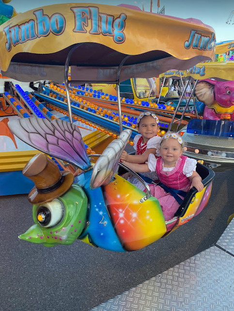 After a wonderful 24 hours in Salzburg, we took a train back to Munich. (Side note: the train back to Munich was pretty miserable. The train scheduled to go to Munich right before ours got canceled for some reason so all passengers hopped on our train. It made for a very warm, uncomfortable 3-hour train ride). When we arrived in Munich, we dropped off our stuff at our hotel, stopped at a local store, purchased the girls dirndls, and walked over to Frühlingsfest, or Spring Festival. During our research of the festival, we found that it was often referred to as “Oktoberfest’s little sister” in that it has the same vendors, rides, and good times but at a much smaller scale with only 2 major beer tents instead of the 17 at Oktoberfest. The festival gave us similar vibes as the carnival portion of the Houston Livestock Show and Rodeo with all the rides and food stalls. The best part though? The girls had the time of their lives.