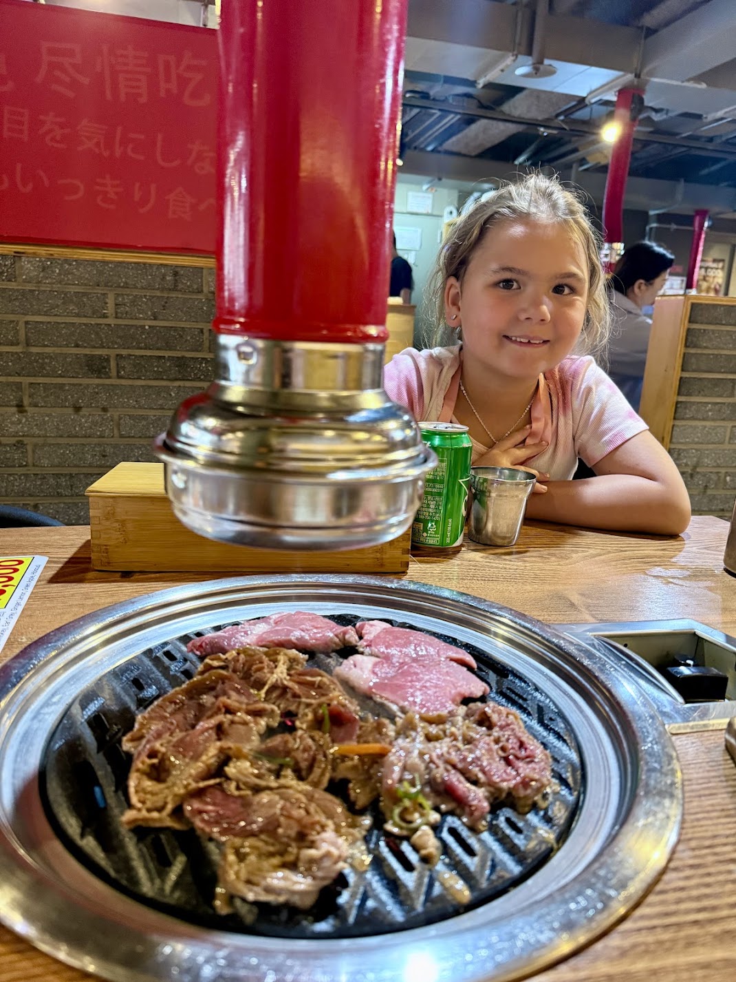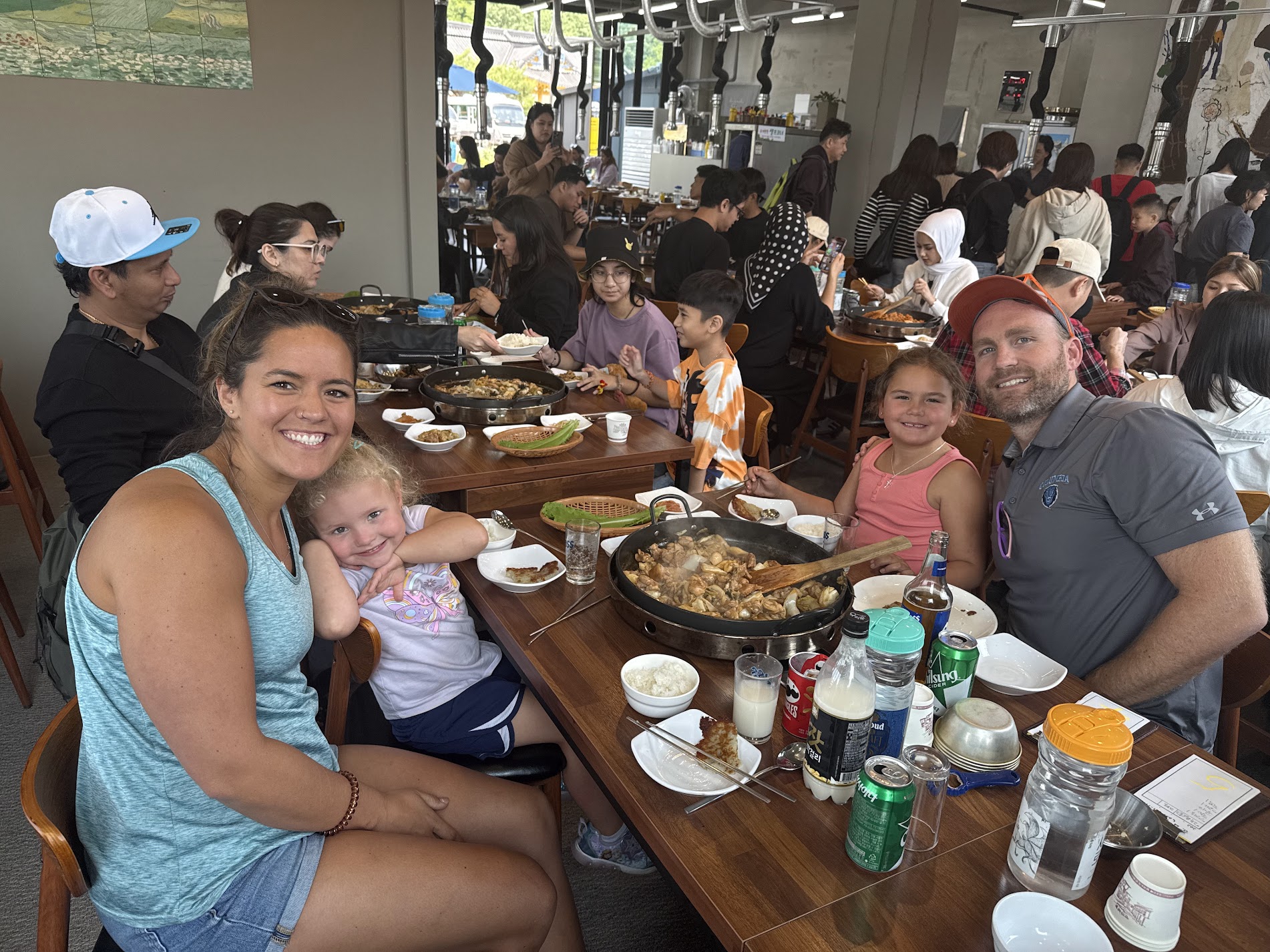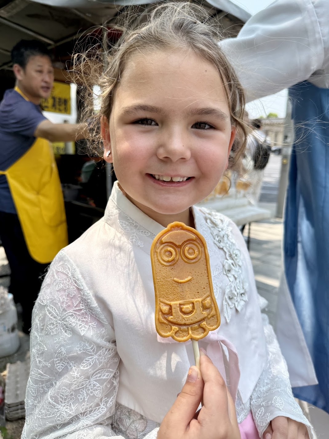 After returning the hanboks, we hopped back on the train to Myeongdong and went to Myeongdong Mongvely Korean BBQ. We loved this place, especially the bulgogi. Our oldest also had a really good time helping out with cooking the meat and vegetables. If we’re ever in the area again in the future, we will be going again. After dinner, we ventured back out to the Myeongdong shopping street, got mochi for dessert, and danced on the street to songs by the street musicians.