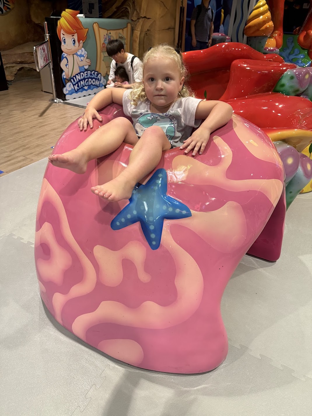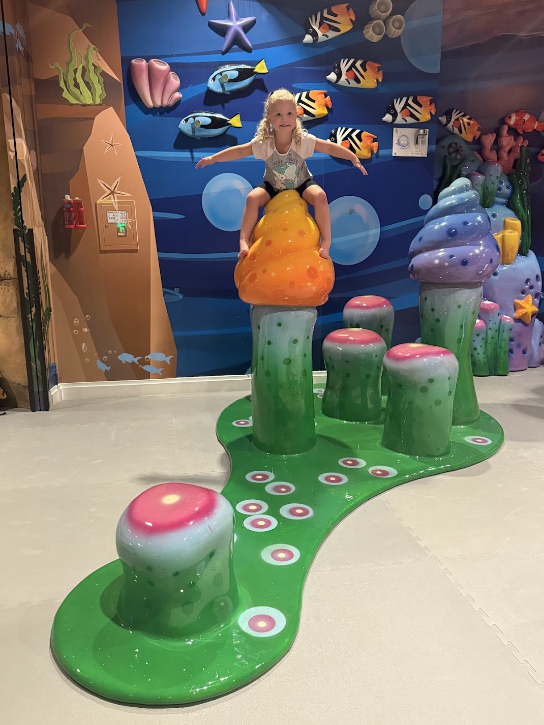 One of the big fan favorites for our youngest was the Under Sea Kingdom playground. This playground included plenty of things to climb and build, as well as a cool feature that allowed kids to color a sheet and then project it onto the wall. She loved watching her pictures come to life. She’s also going through a major climbing phase and was climbing everything in sight during this trip. This playground was the perfect place to let out some of that energy and gave mom and dad some piece of mind within this contained space.