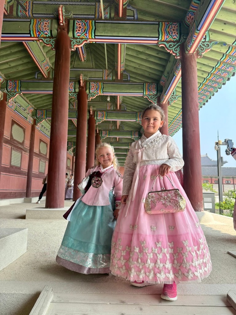 We had absolutely nothing planned during our last day in Korea and the day turned out great. Once we woke up, we decided to head over to Gyeongbokgung Palace which is the former royal palace in Seoul. Upon our arrival, we saw a large number of people dressed up in hanboks, or traditional Korean clothing. We followed the direction everyone was coming from and came across several hanbok rental stores so naturally, we had to participate! The girls were excited to dress up and get their hair done. Dressing up also allowed us free entry and the opportunity to skip the line into the palace grounds.