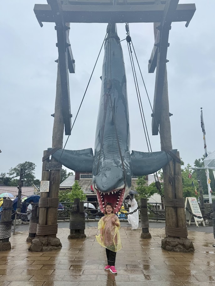 On this ride, you hop on a boat, and you’re navigated through water while the boat captain is narrating. Throughout the ride, a shark pops up on different sides of the boat, similar to the shark in the Jaws movie. Our youngest absolutely loved it and asked to ride it again.