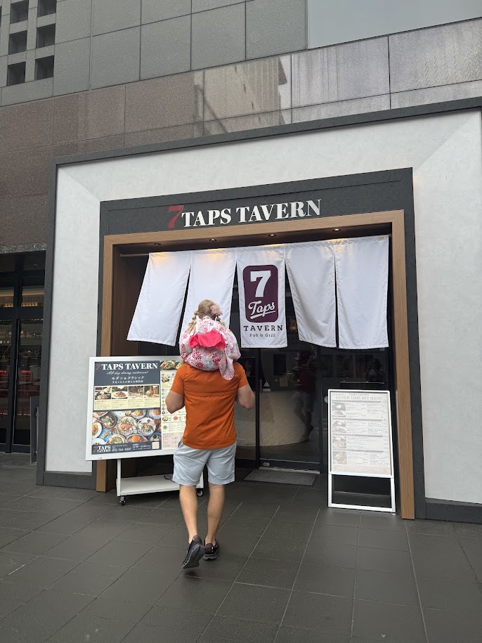 After our visit to the shrines and torii gates, we went back to the Kyoto train station and stopped at a neighboring restaurant called 7 Taps Tavern. It was a great place to stop; the girls were itching for some food they were familiar with and this restaurant had the perfect menu with cheeseburgers and pizza.