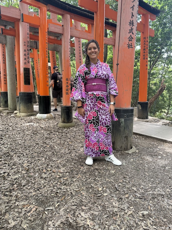 The following day, we rented kimonos and got our hair styled. The entire experience was wonderful. The girls and I got to pick out the fabrics we wanted to wear, as well as the hairstyle we wanted from a variety of options. From there, we hopped on a train over to Fushimi Inari Taisha, or the famous red torii gates.
