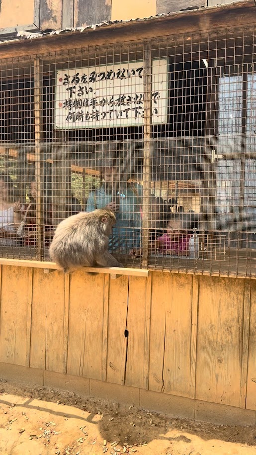 After we got back to shore, we walked over the Togetsukyo Bridge over to the monkey park. To get to this park, you have to walk stairs and straight up hill for about 25 minutes. It was exhausting, it was hot, and our youngest decided she was done using her legs. We were also on a time crunch because we had a 1 PM train to Tokyo Disney out of Kyoto Station. After several stops to catch out breath, we made it to the top! It was worth it too. The girls got to feed the monkeys and the view from this vantage point was amazing. It was a really unique experience we’re glad we got to do before we left this beautiful city.