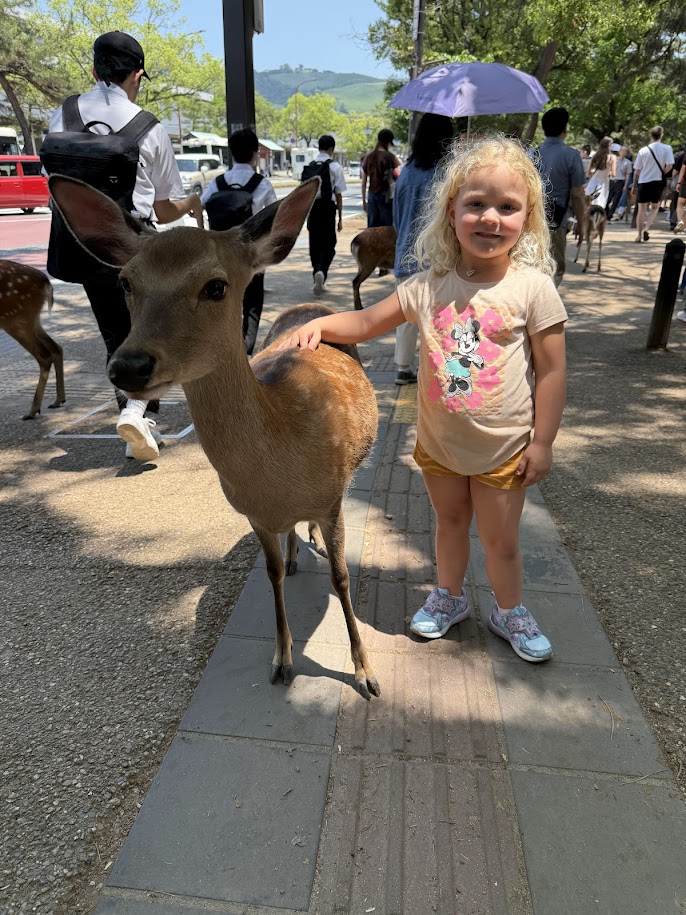 Although it is cool to say you’ve visited the free roaming deer in one of Japan’s oldest parks, we didn’t care for it. Because the deer expect food from tourists, they are completely fearless and pretty aggressive. Several deer bit and knocked down both of our girls. They thought the deer were cool when we first got there but were over the whole experience pretty quickly.