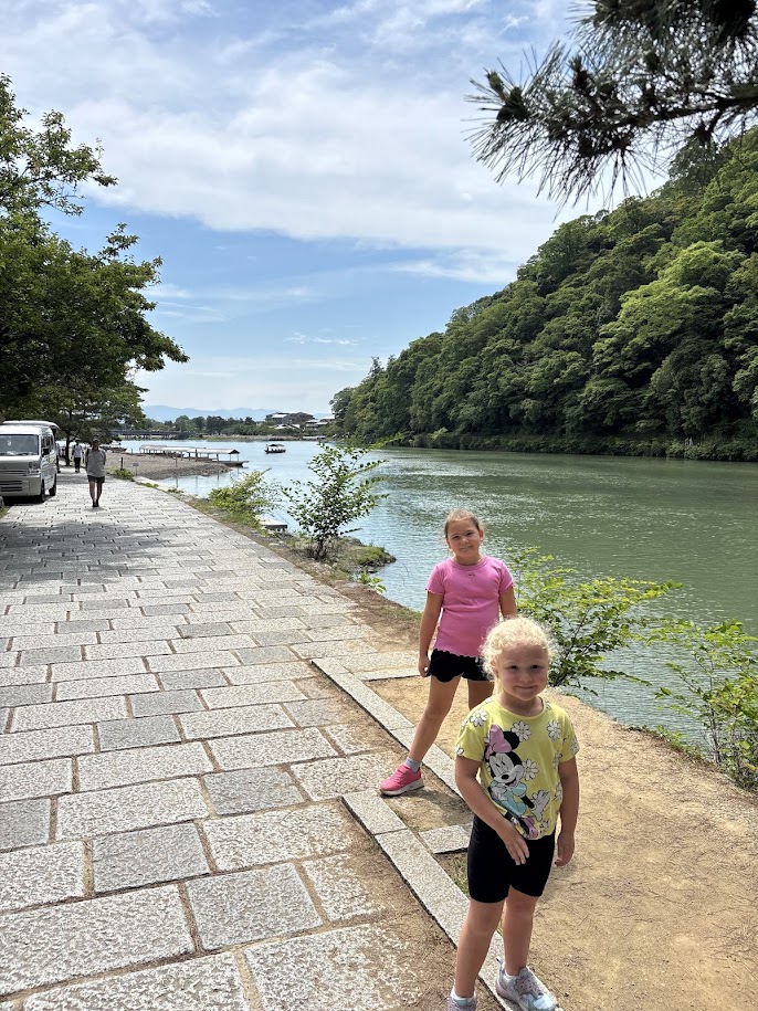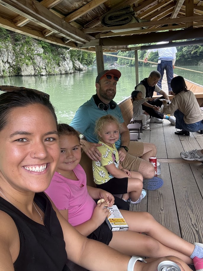 At the recommendation of our new friends from the playground, we ventured down to the Katsura River and paid for a traditional river boat ride. The experience was unforgettable. Not only did we get to see the lush forests from the river, but we also had a snack boat dock next to ours. Snacks via boat? Say less. The girls were so excited!