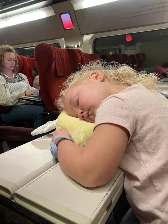 After three incredible days in Amsterdam, we got up bright and early on the fourth day of our Euro-roadtrip to hop on a train to Antwerp. With all of us still trying to beat the jet lag while also having run ourselves rampant in Amsterdam, our girls were very quick to fall asleep during the one-and-a-half-hour train ride to Belgium.